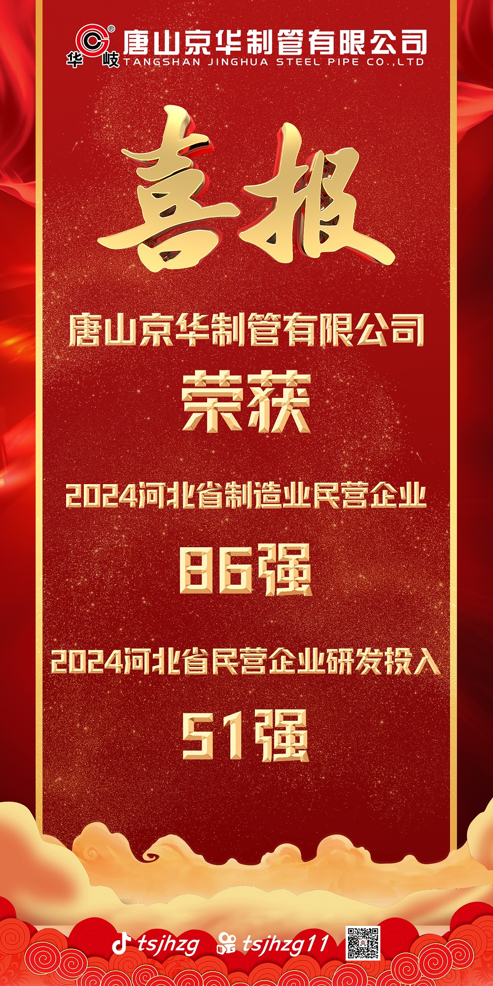 唐山京华荣登2024河北省制造业民营企业百强榜单